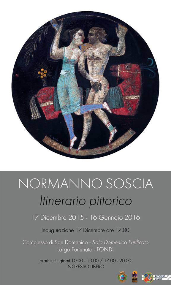 Giovedì 17 dicembre alle ore 17.00 presso la sala Purificato del complesso S. Domenico in Fondi ci sarà l'inaugurazione della mostra del puittore Normanno Soscia.
