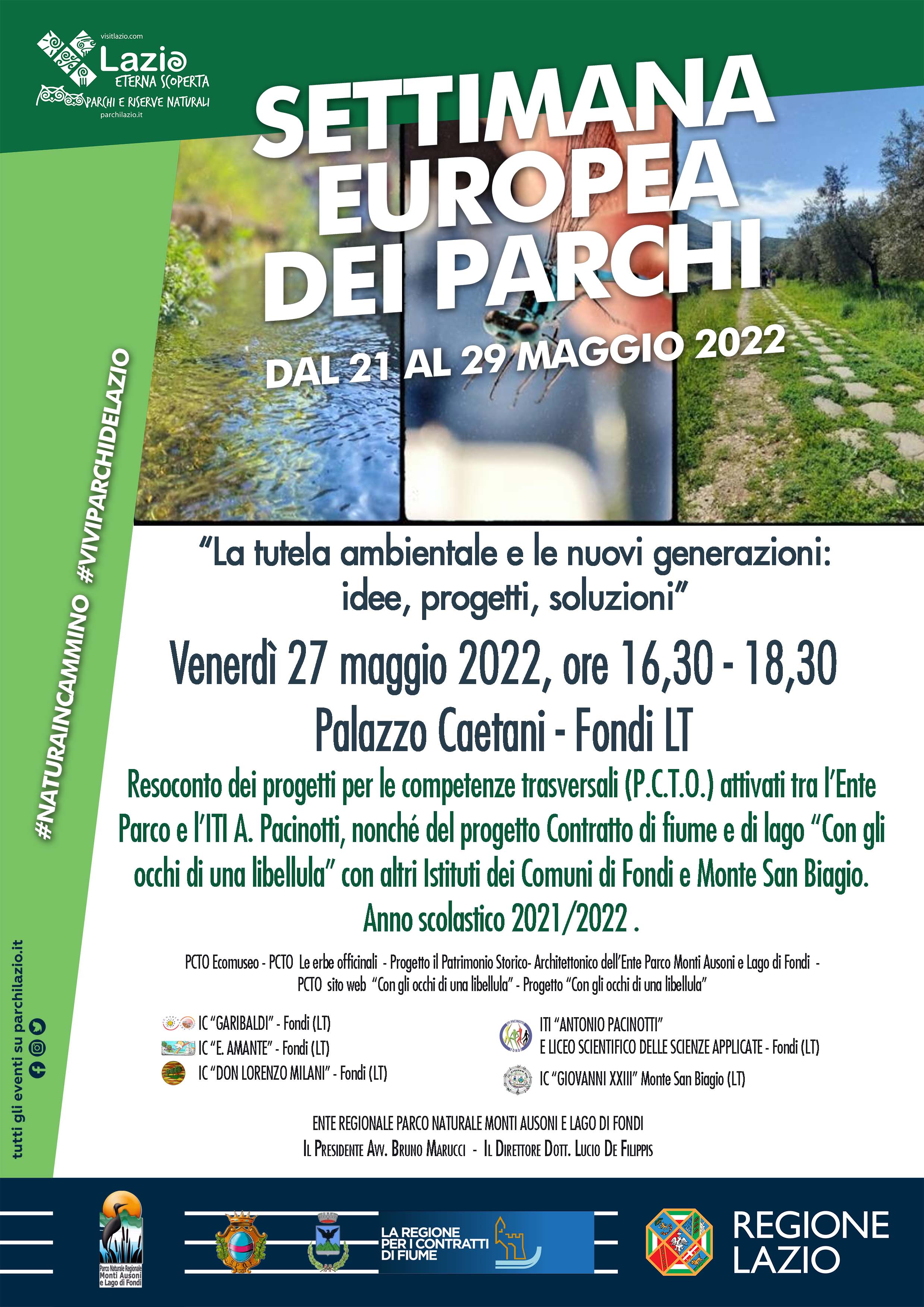 Resoconto dei progetti per le competenze trasversali (P.C.T.O.) attivati tra l’Ente Parco e l’ITI A. Pacinotti, nonché del progetto Contratto di fiume e di lago “Con gli occhi di una libellula” con altri Istituti dei Comuni di Fondi e Monte San Biagio. Anno scolastico 2021/2022.