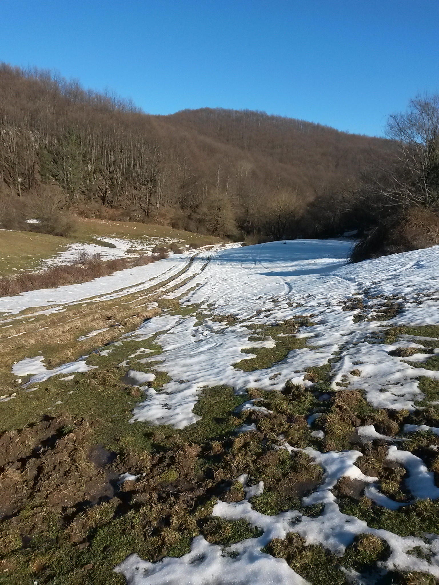Si tratta di un breve sentiero che permette di salire alla vetta del Monte Follettoso (1006 m.). La traccia del percorso, salendo, si fa presto meno evidente, fra alberi di querce, aceri e carpini e arbusti di biancospino, maggiociondolo e sanguinella. Dalla cima, la vista spazia sui Monti Lucretili e la Valle del Licenza. Si può in seguito tornare al bivio dell’inizio del sentiero e deviare per Prato Porcini (305 A).