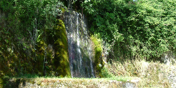 Si tratta di una fontana nei boschi costruita come una scenografia rinascimentale e alimentata da una cascatella artificiale. Si tratta di un'opera creata per convogliare le acque sorgive di quella che si ritiene fosse l'antica Fonte Bandusia , cantata dal poeta latino Orazio. Le incrostazioni calcaree che ricoprono la struttura e la fitta vegetazione di muschi, capelvenere e farfaraccio, favorita dal vapore acqueo, non consentono di cogliere alcuni particolari architettonici originari dell'opera, quali il timpano e le colonnine.