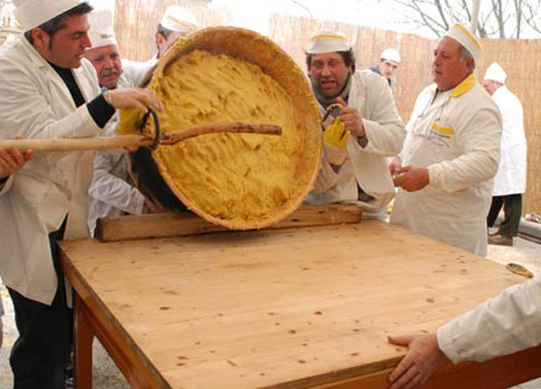 Già dal 1920 questo piatto, povero per definizione, è considerato un simbolo del paese reatino che si affaccia sul Lago del Turano e così, da quasi un secolo, non passa anno in cui non si rinnovi la sagra ad esso dedicata. Il polentone viene condito tradizionalmente con un sugo di aringa, tonno, baccalà ed alici.