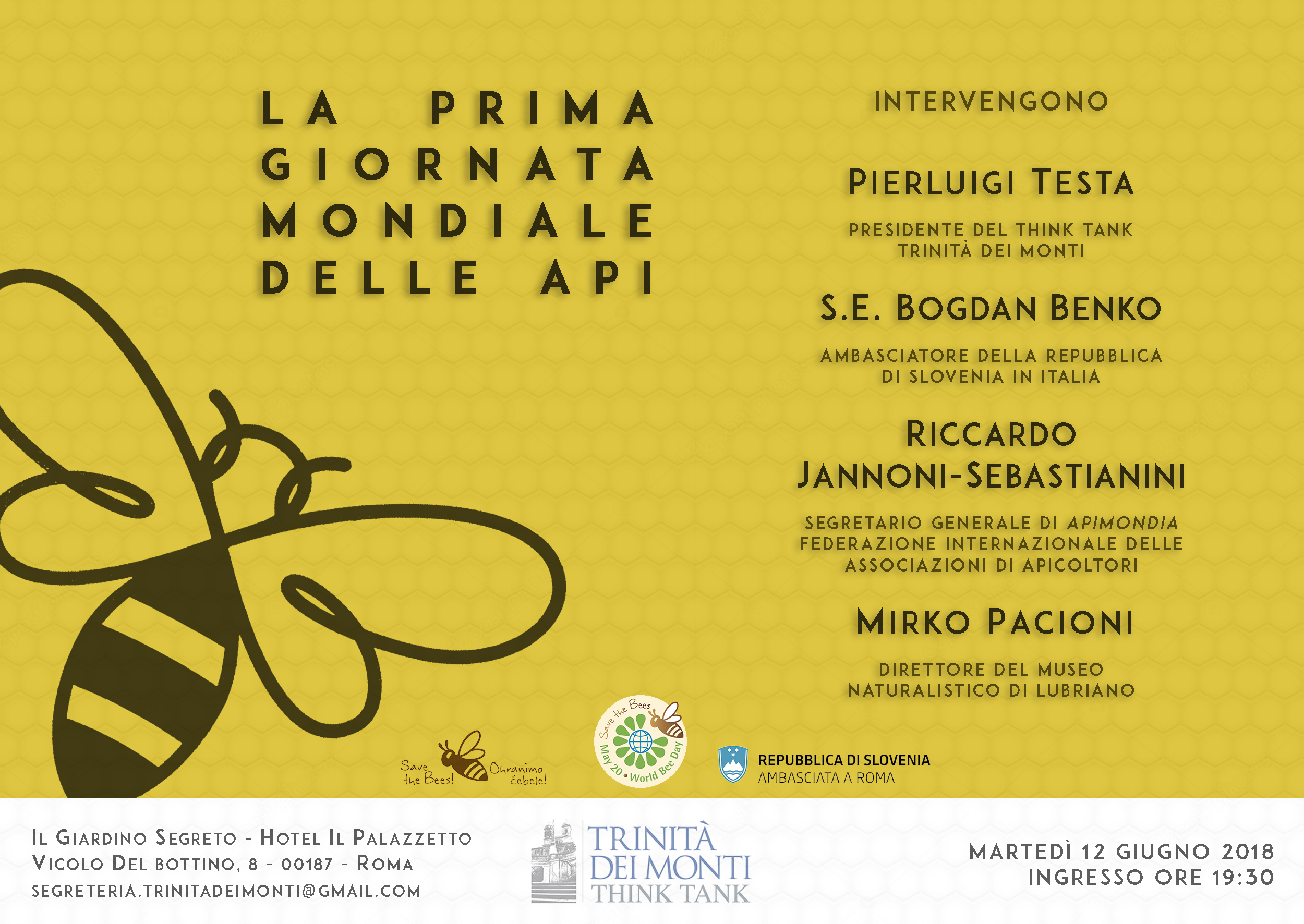 L'evento, organizzato in collaborazione con il Think Tank "Trinità dei Monti", sarà aperto da S.E. Bogdan Benko, Ambasciatore della Repubblica di Slovenia in Italia e Rappresentante Permanente presso l'Organizzazione delle Nazioni Unite per l'alimentazione e l'agricoltura (FAO). I temi verranno approfonditi dal dott. Riccardo Jannoni-Sebastianini, Segretario Generale di Apimondia (Federazione Internazionale delle Associazioni di Apicoltori), e dal dott. Mirko Pacioni, Direttore del Museo Naturalistico di Lubriano. A coordinare gli interventi ci sarà il dott. Pierluigi Testa, Presidente del Think Tank "Trinità dei Monti".