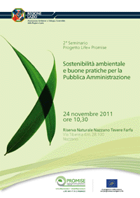 Il giorno 24 novembre p.v. alle ore 10.30 presso la Sala dell'Ecomuseo della Riserva Naturale Regionale Nazzano - Tevere Farfa (in località Meana, Via Tiberina Km 28,100), si terrà il II Seminario informativo del Progetto Life + Promise - Sostenibilità ambientale e buone pratiche per la Pubblica Amministrazione.
