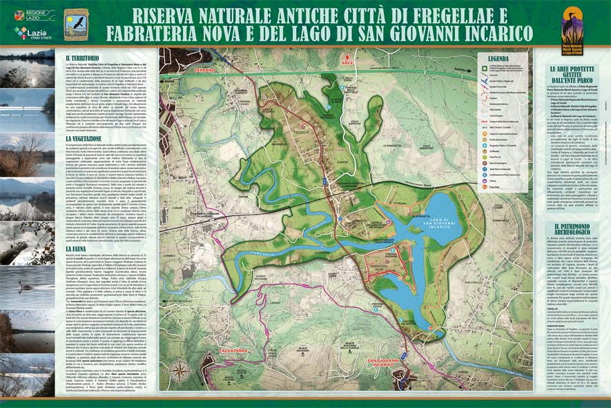 Mappa della Riserva Naturale Antiche città di Fregellae, Fabrateria Nova e Lago di S. Giovanni Incarico, la cui gestione è stata affidata all'Ente Parco Monti Ausoni e Lago di Fondi.