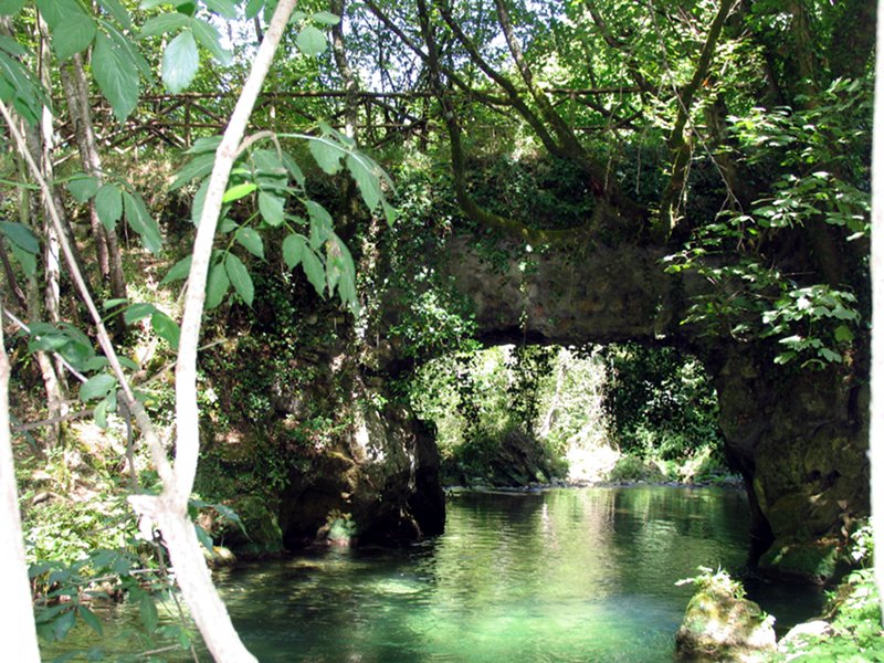 Il sentiero inizia nei pressi dei ruderi della Villa di Nerone, dove comincia la strada che collega Subiaco con Jenne. Attraversata la strada asfaltata si prosegue sui gradoni in pietra che portano al Monastero di S.Scolastica. Da qui il sentiero scende piacevolmente nel bosco fino ad incrociare la strada che costeggia il fiume Aniene. Si svolta a sinistra percorrendo la strada dapprima asfaltata e poi sterrata.