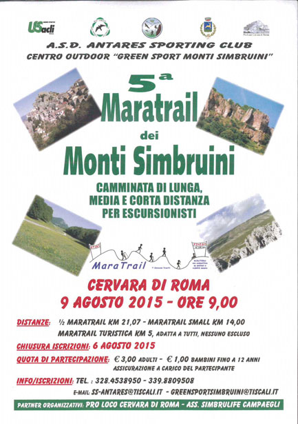 Infromazioni e iscrizioni alla mail: ss-antares@tiscali.it, greensportsimbruini@tiscali.it, le iscrizioni chiudono giovedì 6 agosto 2015.