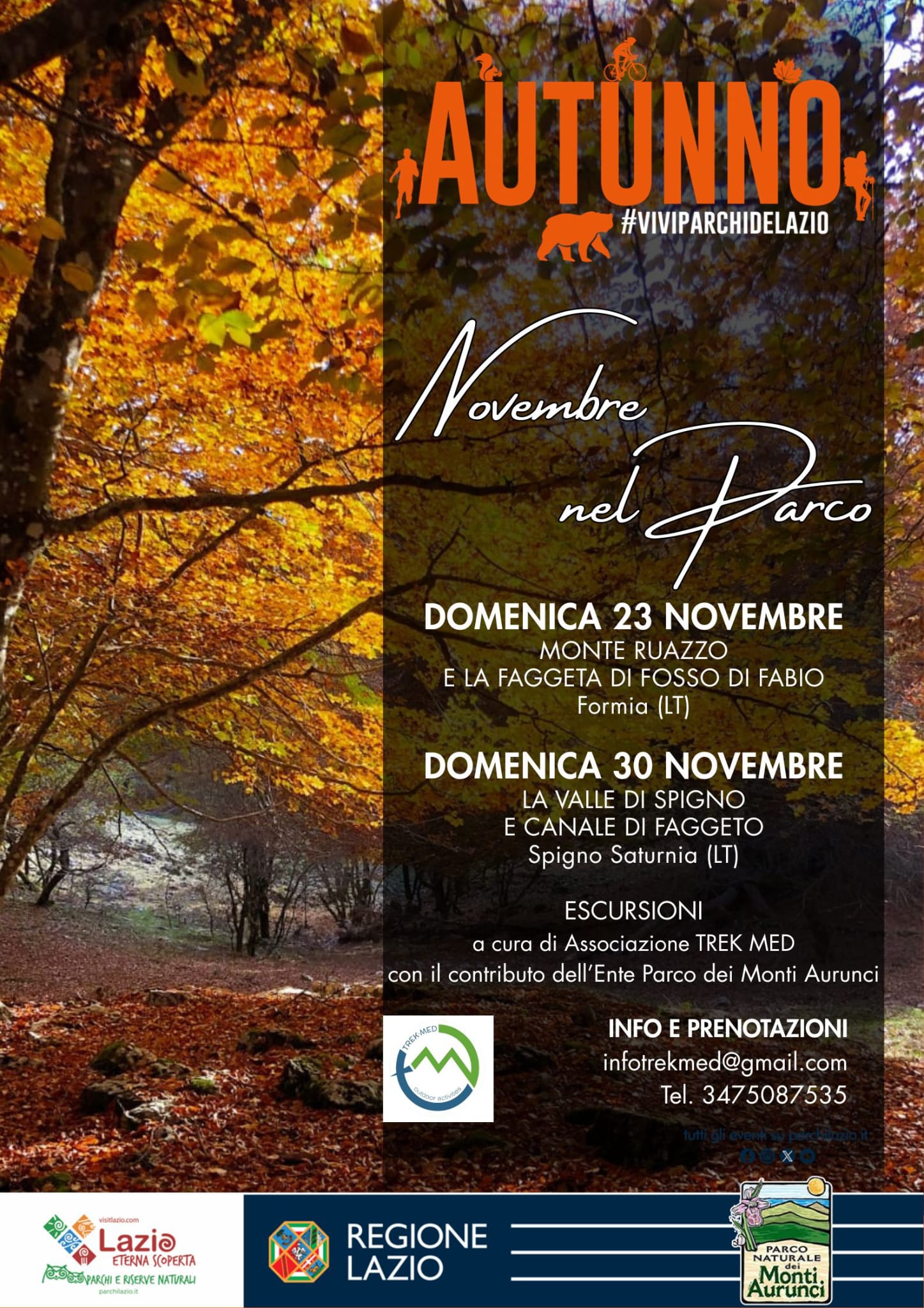 L’Ente Parco dei Monti Aurunci avvia la rassegna “Autunno nel Parco”, un insieme di appuntamenti dedicati alla scoperta del territorio e delle sue atmosfere stagionali, organizzati con il contributo della Regione Lazio.
