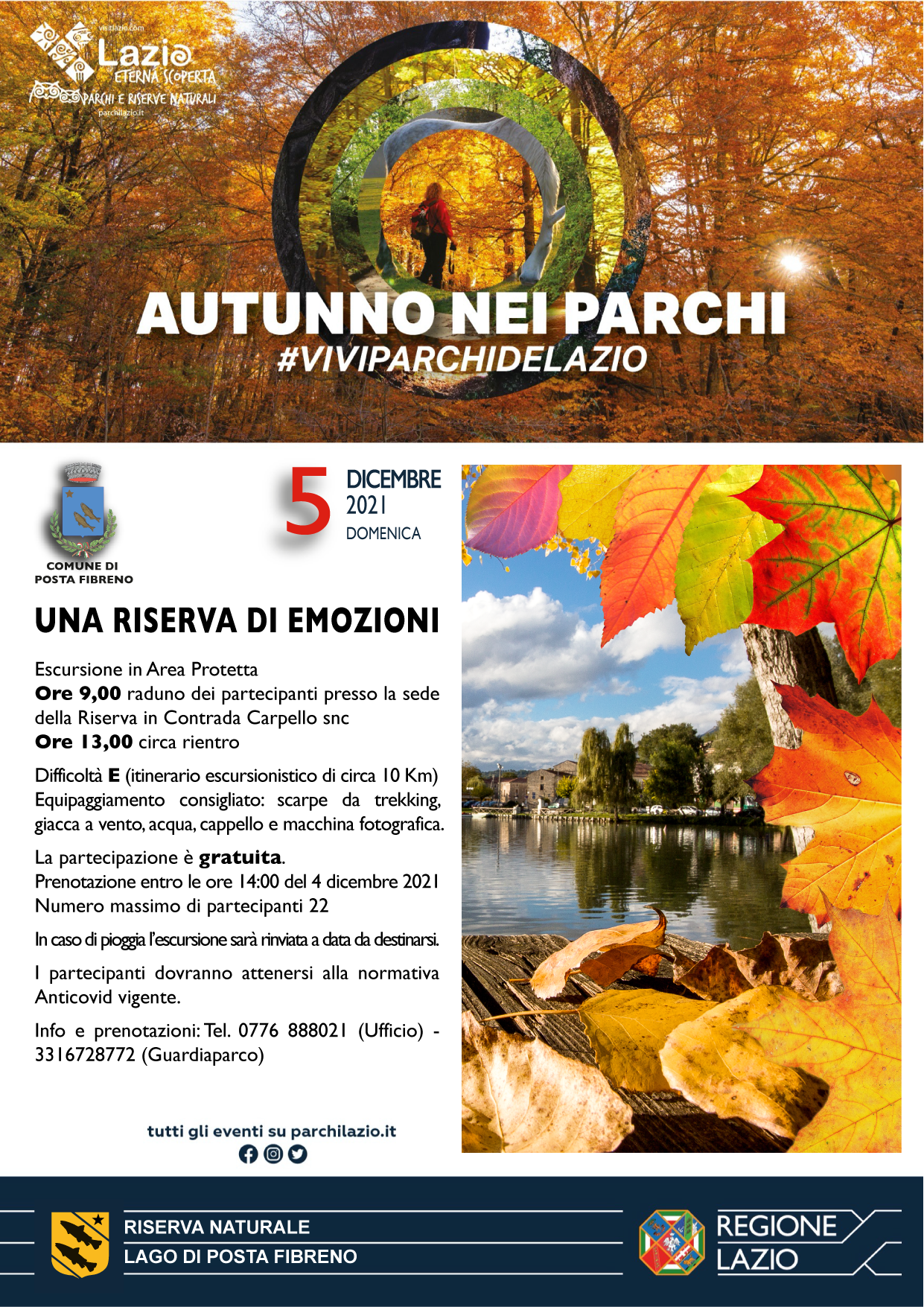Domenica 5 dicembre, la Riserva Naturale lago di Posta Fibreno organizza “Una Riserva di Emozioni”, escursione gratuita in Area Protetta che consentirà di trascorrere una mattinata all’insegna della natura e delle emozioni che riesce a trasmettere con i suoi caldi colori, i suoi suoni e i suoi profumi.