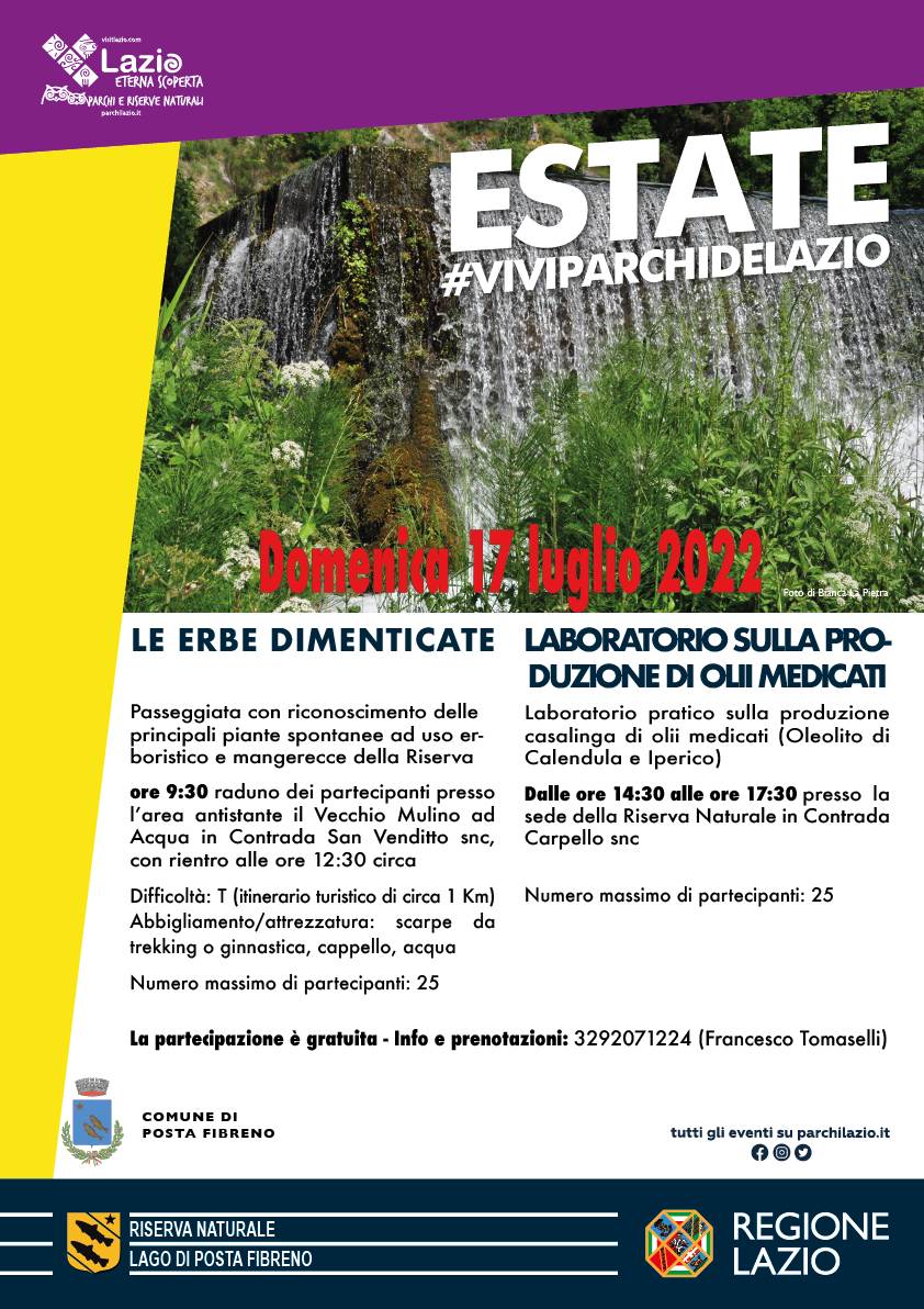 Domenica 17 luglio 2022 giornata ricca di eventi nella Riserva Naturale lago di Posta Fibreno.