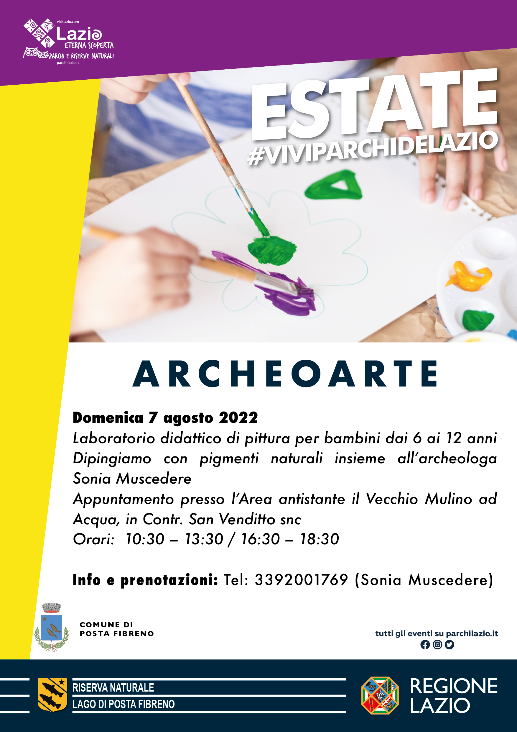 Domenica 7 agosto 2022, proseguono gli eventi organizzati dalla Riserva Naturale lago di Posta Fibreno con “Archeoarte”, laboratorio didattico di pittura, per bambini dai 6 ai 12 anni, tenuto dall’archeologa Sonia Muscedere.