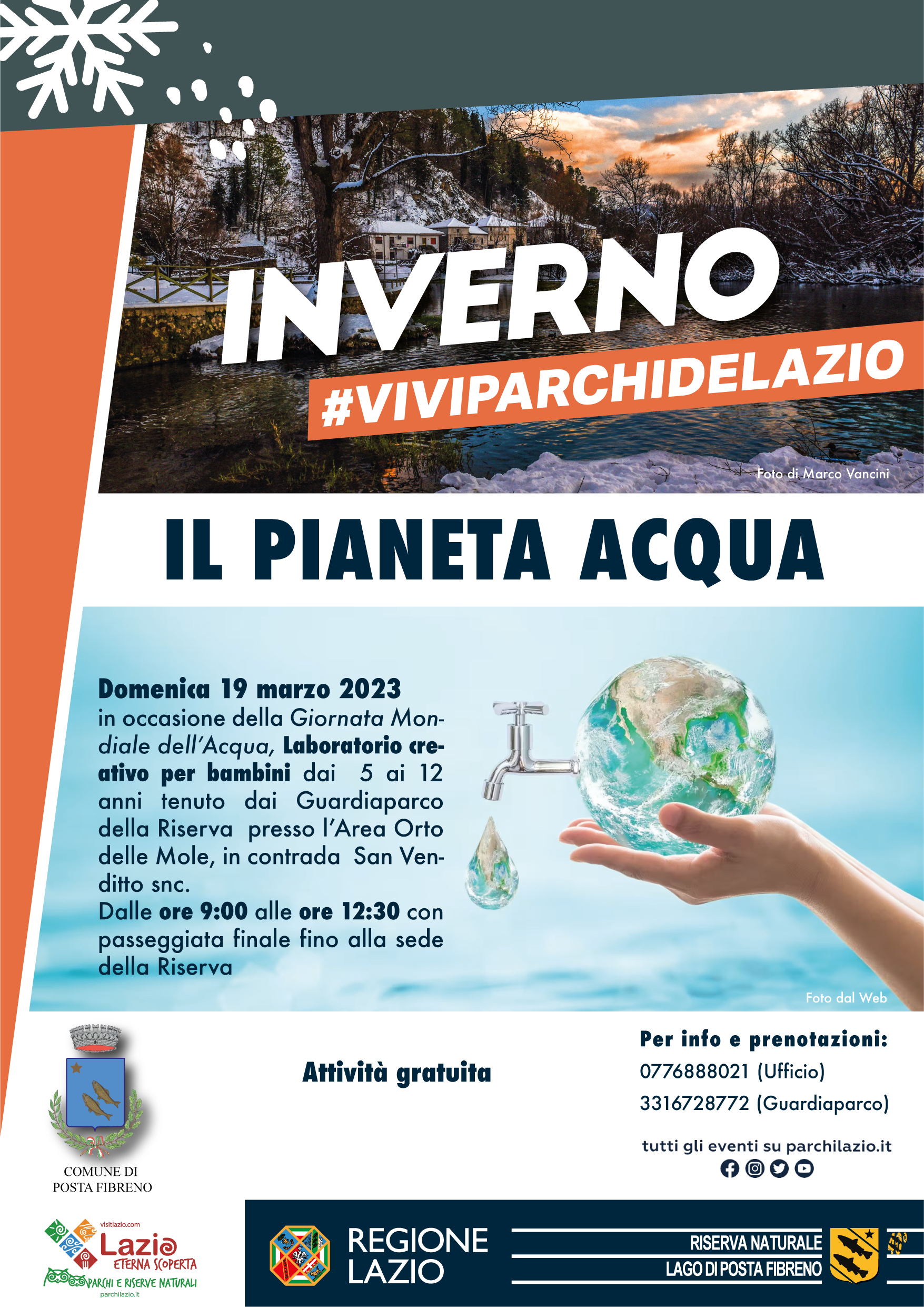 Per i piccoli dai 5 ai 12 anni appuntamento con i Guardiaparco, presso l’Area Orto delle Mole dalle ore 9:00 alle ore 12:30, per il laboratorio creativo “IL PIANETA ACQUA”. Attraverso il gioco i bambini impareranno a conoscere l’acqua, le sue magie, i suoi percorsi...