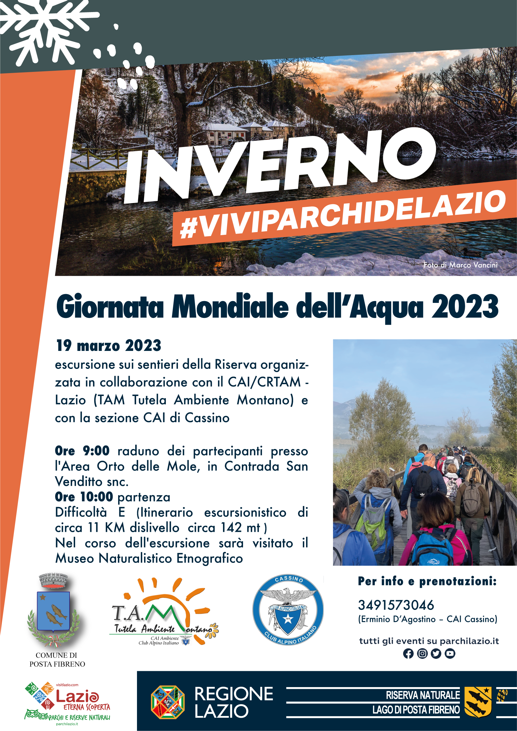 Organizzata in collaborazione con il CAI/CRTAM - Lazio (TAM Tutela Ambiente Montano) e la Sezione CAI di Cassino l’escursione “CELEBRAZIONE GIORNATA MONDIALE DELL’ACQUA 2023” prevede un percorso ad anello di difficoltà E di circa 11 Km che porterà i partecipanti a costeggiare il lago per poi salire fino alla parte collinare del paese e raggiungere il centro storico.