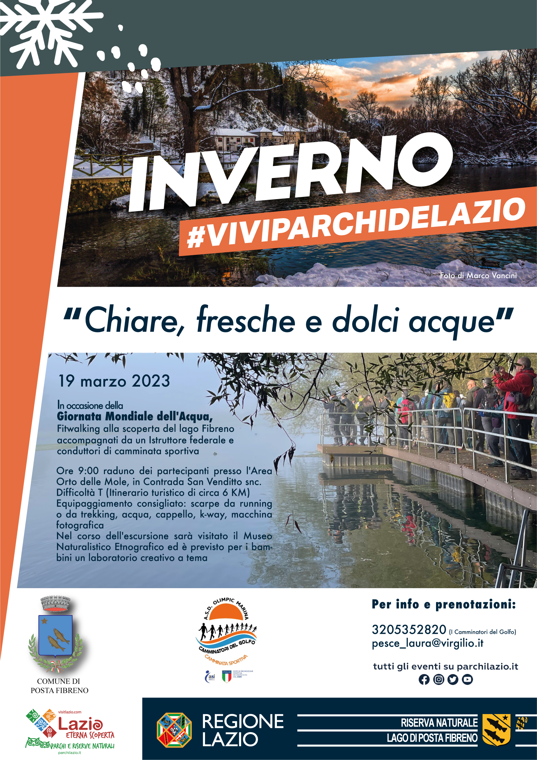 “CHIARE, FRESCHE E DOLCI ACQUE” è la camminata organizzata in collaborazione con I Camminatori del Golfo ASD Atletica Olimpic Marina, Minturno, che consentirà agli amanti della disciplina sportiva del Fitwalking di conoscere il lago Fibreno e le sue sorgenti.
