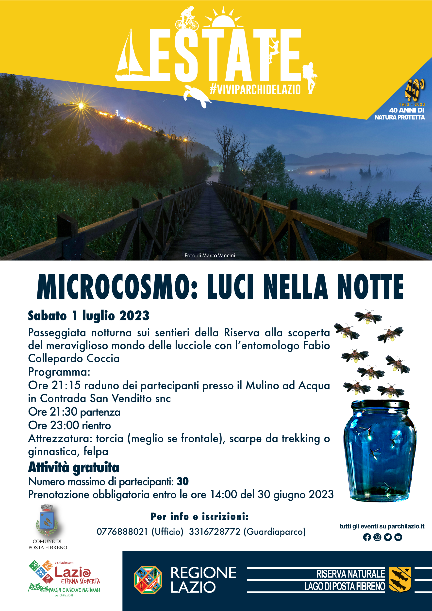 Un affascinante viaggio notturno, guidato dall’entomologo Fabio Collepardo Coccia, alla scoperta delle lucciole e delle creature del buio che popolano l’area protetta. Un popolo nascosto che si risveglia al tramontar del sole.