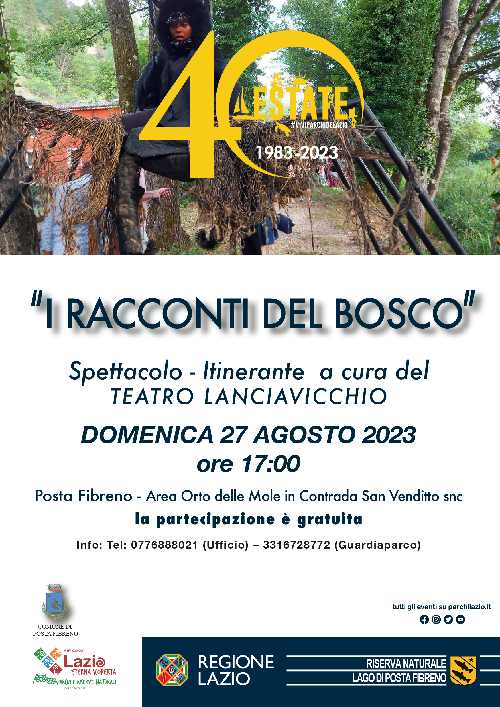 Domenica 27 agosto 2023 vi aspettiamo, presso la Riserva Naturale lago di Posta Fibreno, per trascorrere insieme un pomeriggio all’insegna della magia e del divertimento con “I Racconti del bosco”, spettacolo teatrale itinerante per famiglie.
