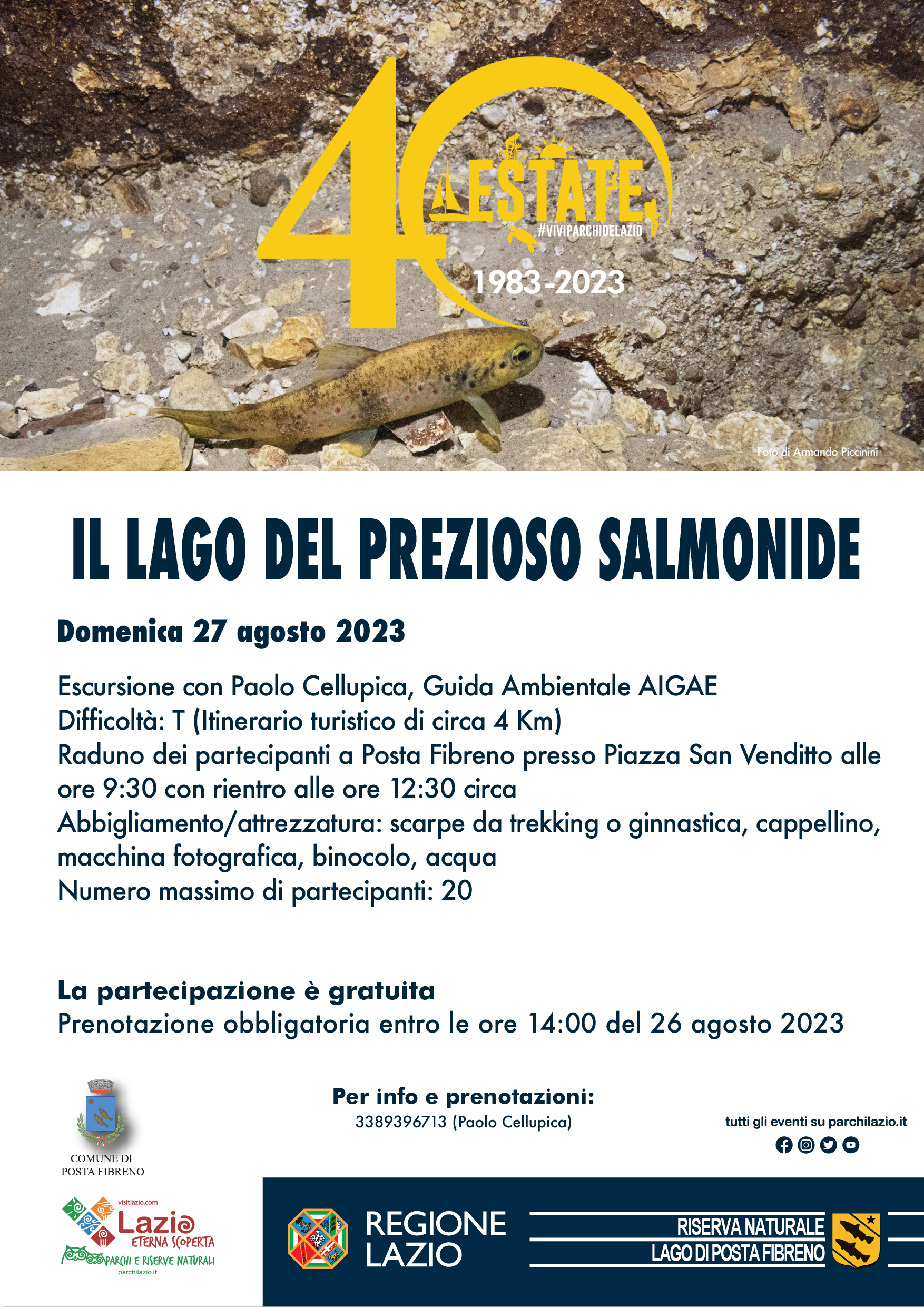 Domenica 27 agosto 2023 proseguono con "Il lago del prezioso salmonide" le escursioni estive organizzate dalla Riserva Naturale lago di Posta Fibreno.