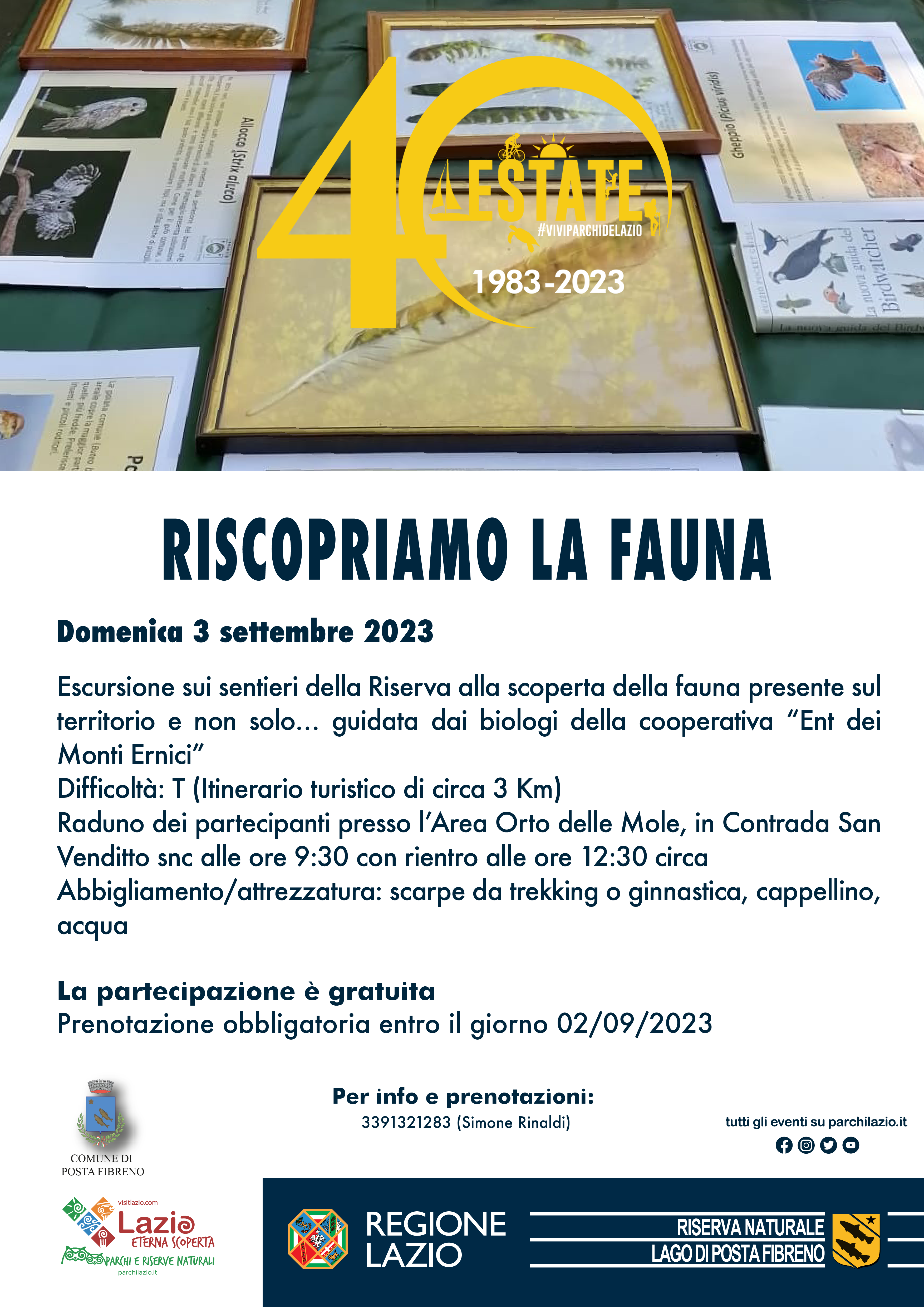 Domenica 3 settembre 2023 la Riserva Naturale Lago di Posta Fibreno organizza “Riscopriamo la fauna”.