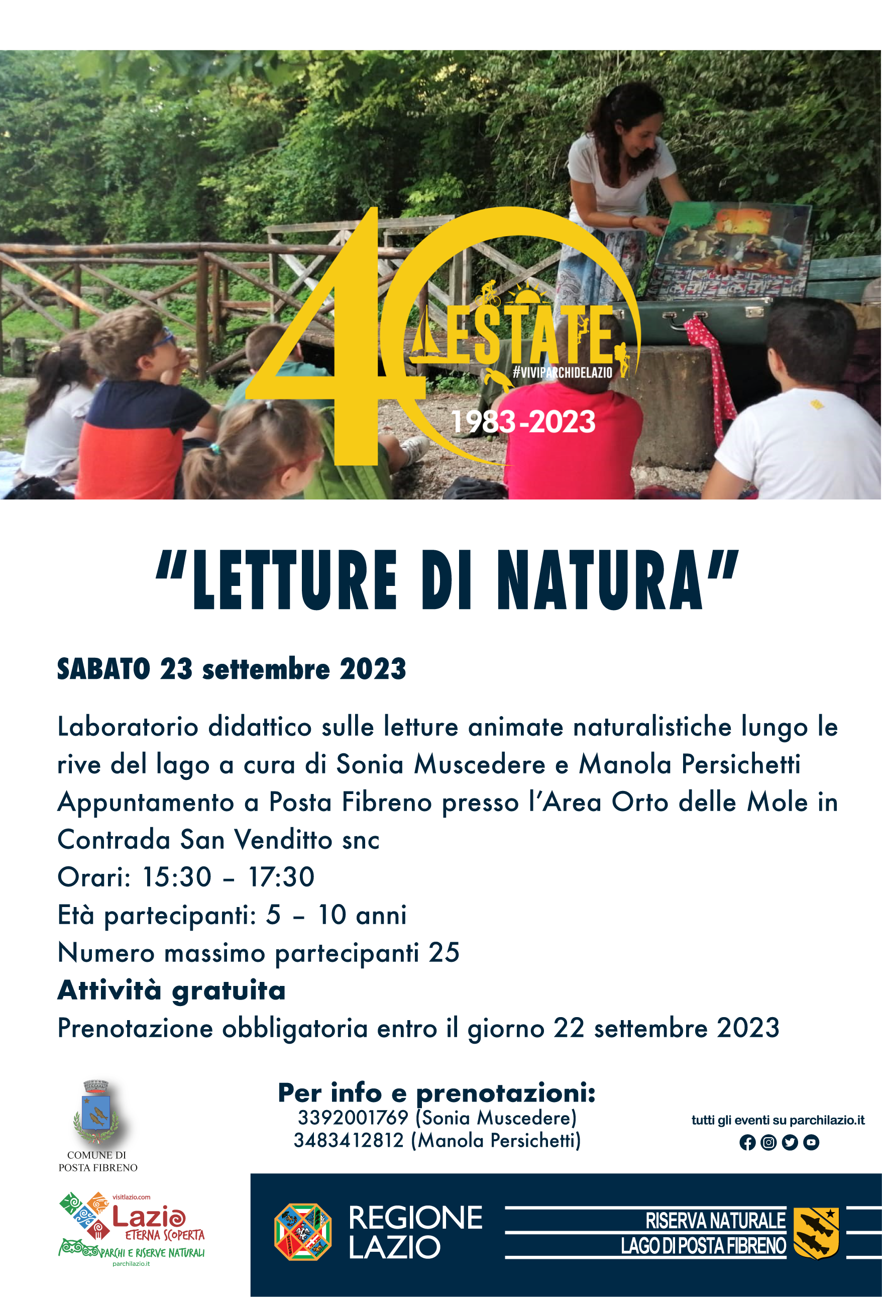 Sabato 23 settembre 2023 “Letture di Natura”, laboratorio didattico su letture animate naturalistiche a Posta Fibreno, presso l’area Orto delle Mole, in Contrada San Venditto snc.