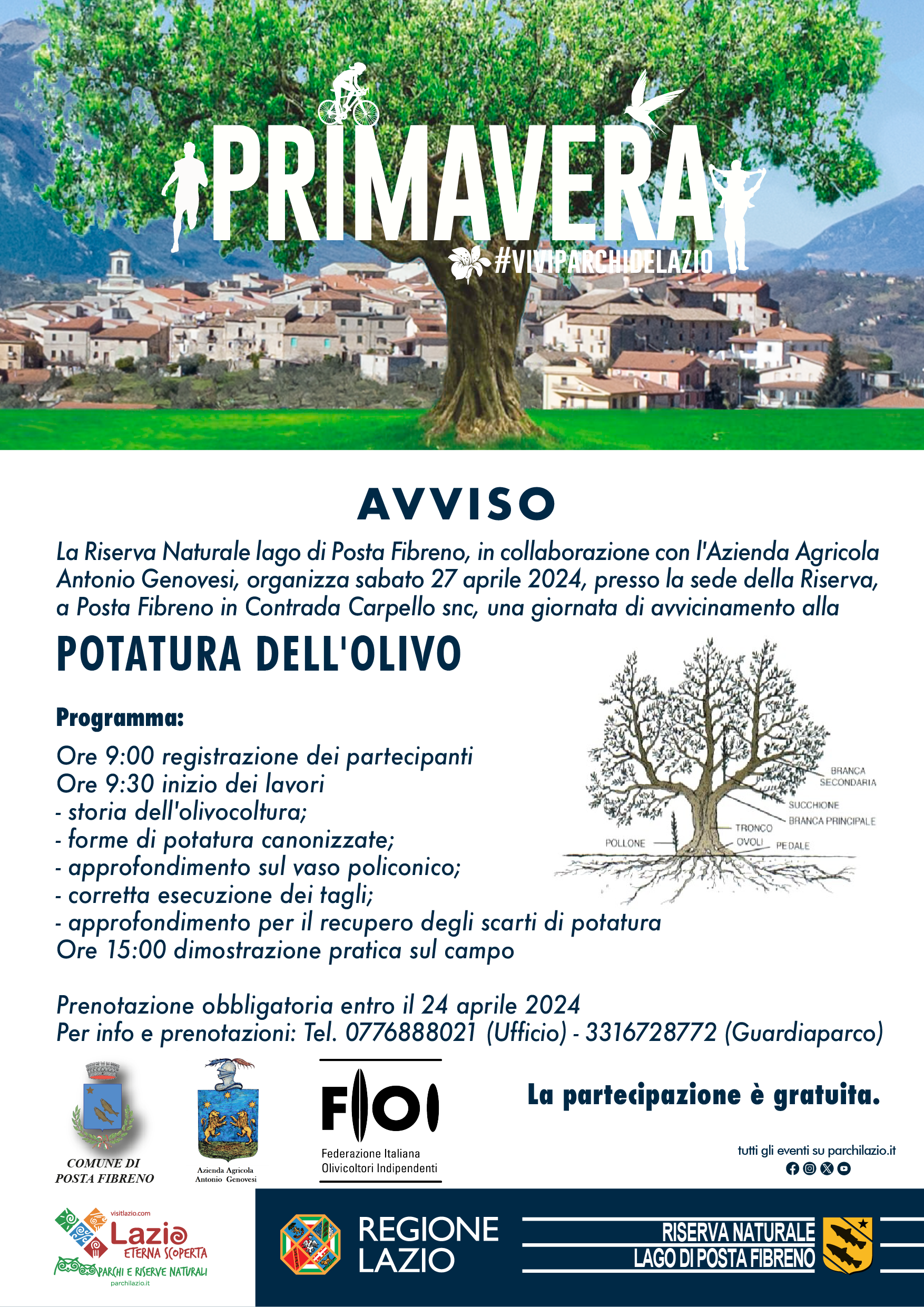 Sabato 27 aprile 2024, la Riserva Naturale lago di Posta Fibreno, in collaborazione con l’Azienda Agricola Genovesi, organizza una giornata di avvicinamento alla potatura.