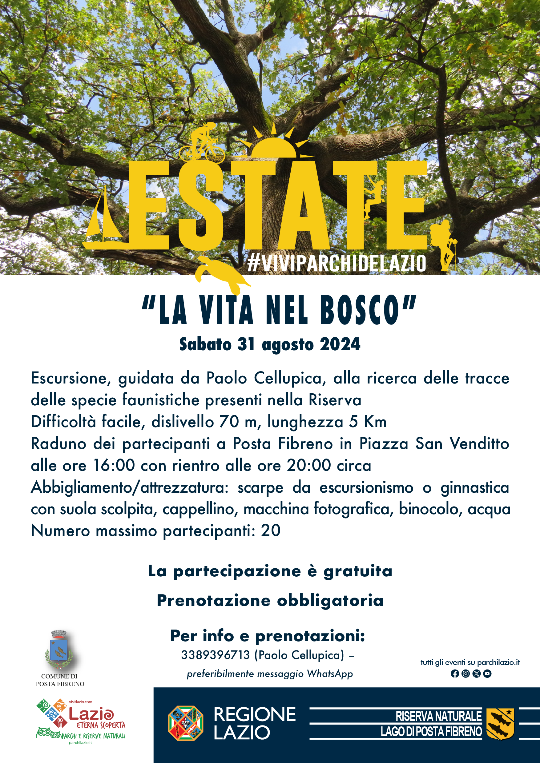 Sabato 31 agosto 2024 la Riserva Naturale lago di Posta Fibreno organizza "La vita nel bosco".