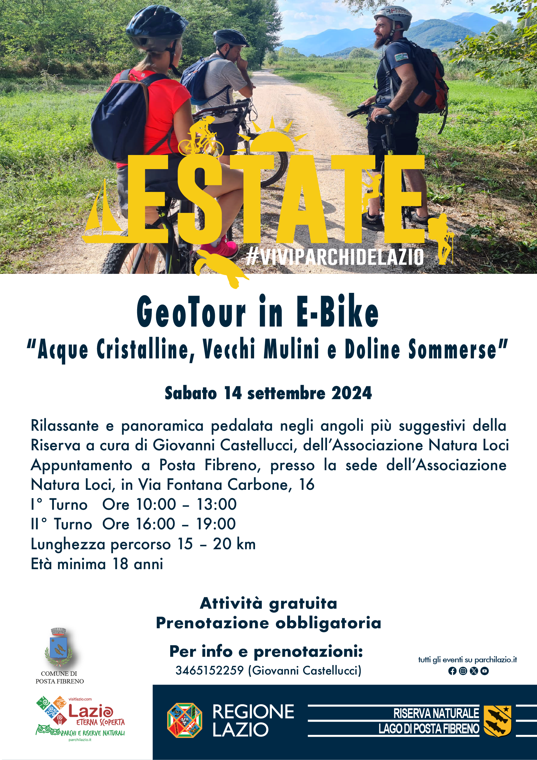 Sabato 14 settembre 2024, la Riserva Naturale lago di Posta Fibreno organizza GeoTour in E-Bike "Acque Cristalline, Vecchi Mulini e Doline Sommerse"
