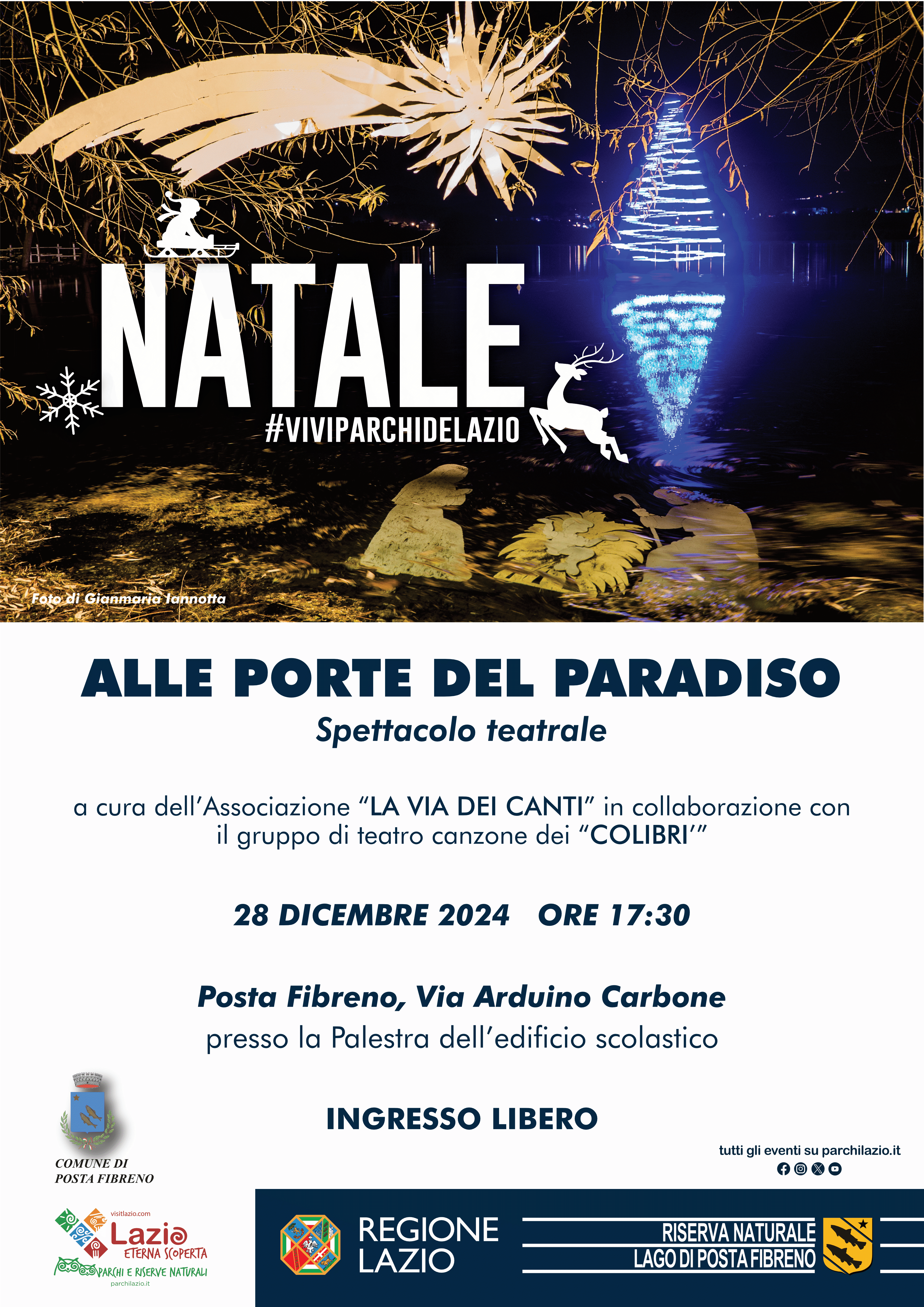 Sabato 28 dicembre 2024, la Riserva Naturale lago di Posta Fibreno, nell’ambito degli eventi “Vivi i Parchi del Lazio”, organizza lo spettacolo “Alle porte del Paradiso”.