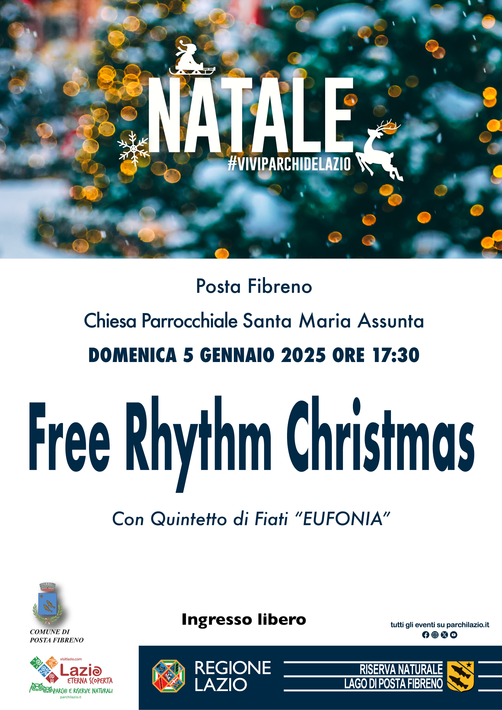 Domenica 5 gennaio 2025, vi aspettiamo, alle ore 17:30, presso la Chiesa di Santa Maria Assunta, in Posta Fibreno, per assistere al concerto “Free Rhythm Christmas”, con il Quintetto di Fiati “Euforia”.