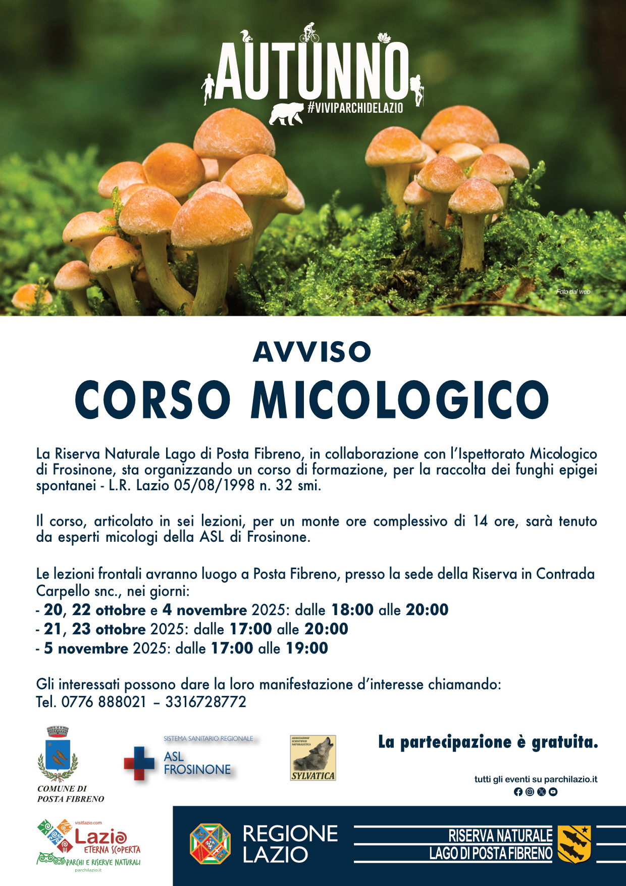 La Riserva Naturale lago di Posta Fibreno, in collaborazione con l’Ispettorato Micologico di Frosinone, organizza un corso di formazione micologica ai sensi della L.R. n. 32 del 5 maggio 1998 e smi.