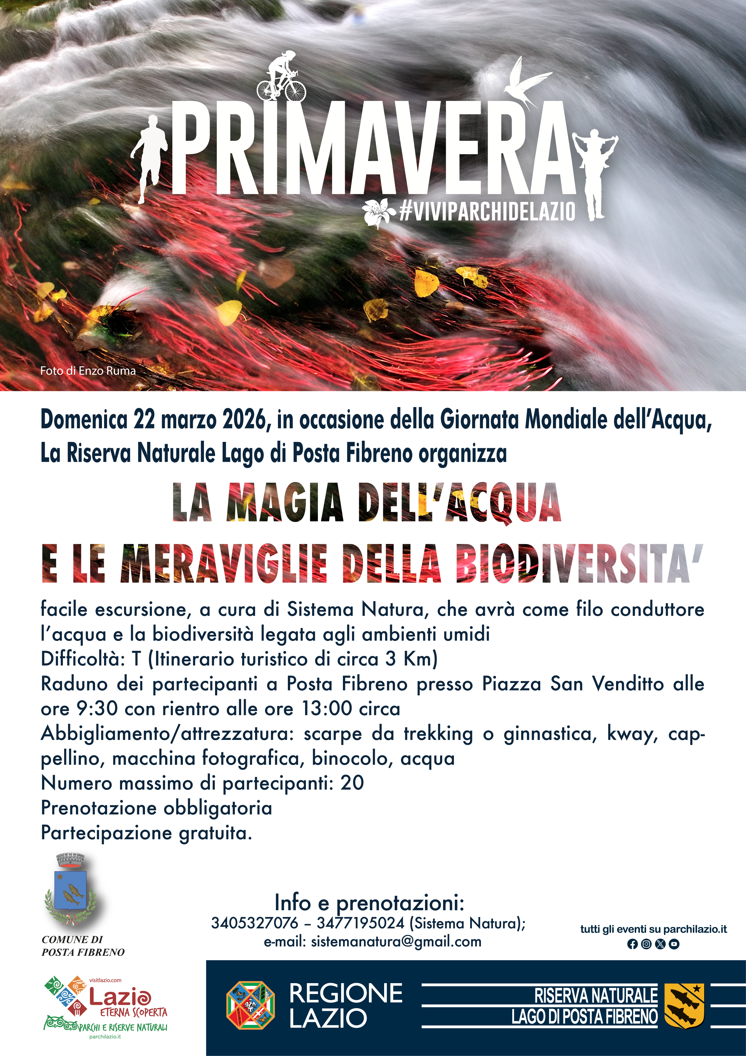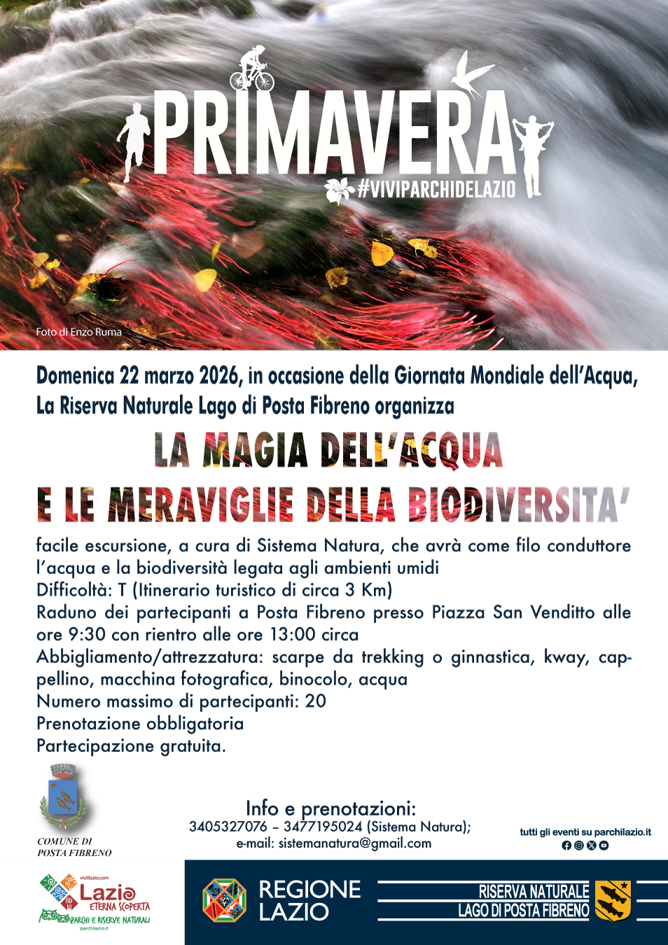 Per info e prenotazioni: 3405327076 – 3477195024 (Sistema Natura) e-mail: sistemanatura@gmail.com