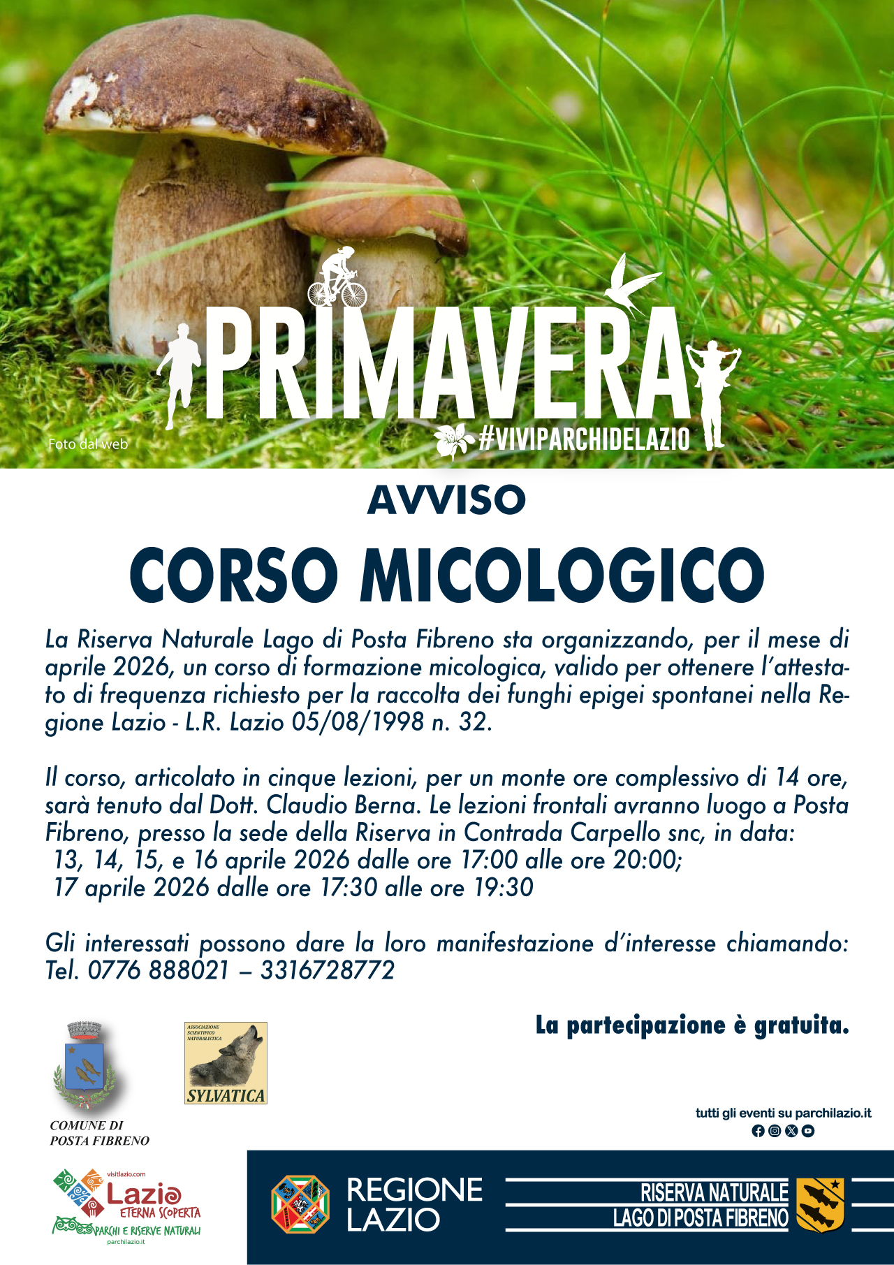 La Riserva Naturale Lago di Posta Fibreno organizza un corso di formazione micologica, valido ai fini del rilascio dell'attestato di frequenza richiesto per la raccolta dei funghi epigei spontanei nella Regione Lazio (L.R. Lazio 05/08/1998 n. 32).