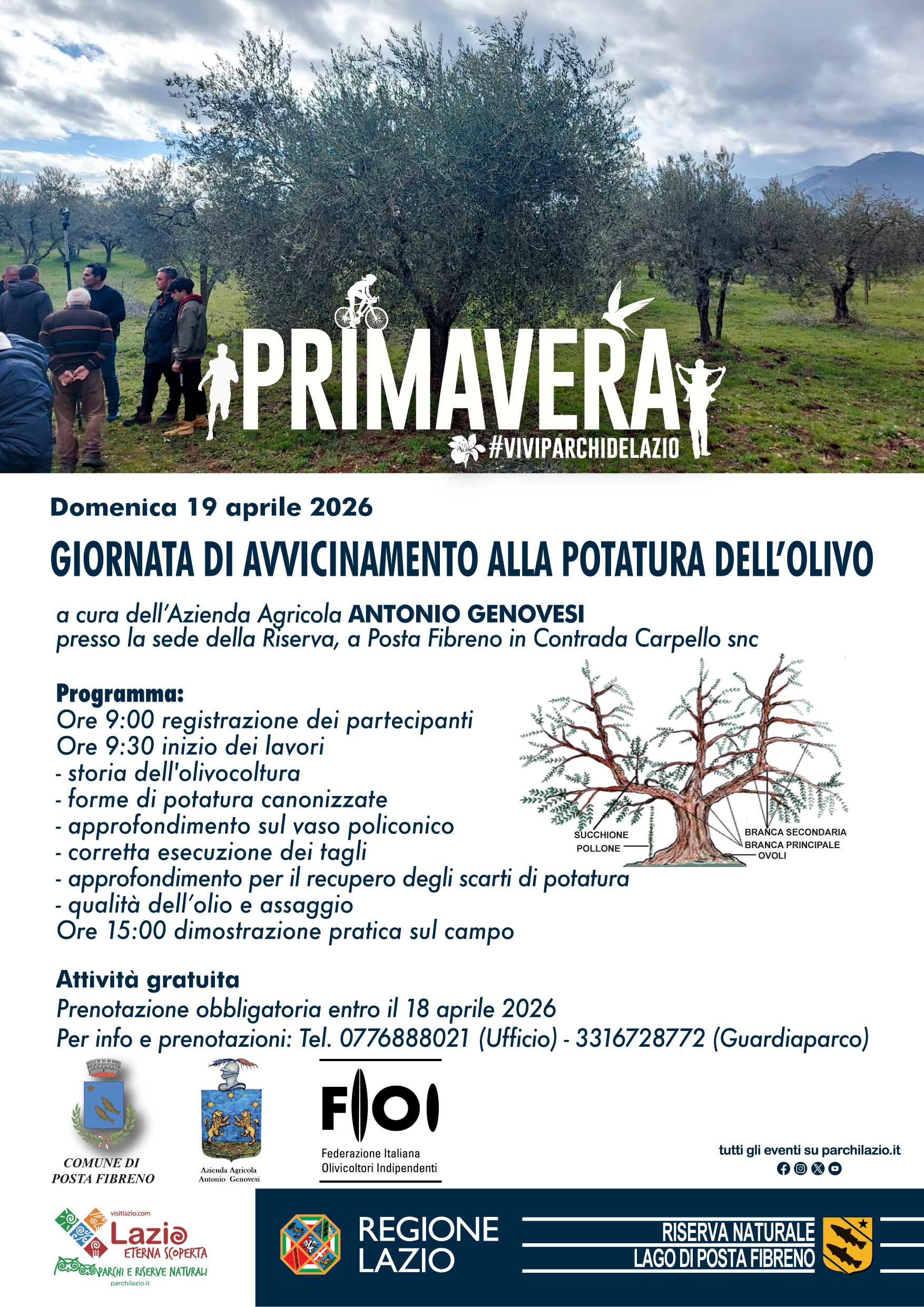 Torna domenica 19 aprile 2026 la tradizionale giornata formativa dedicata all’avvicinamento alla potatura dell’olivo.