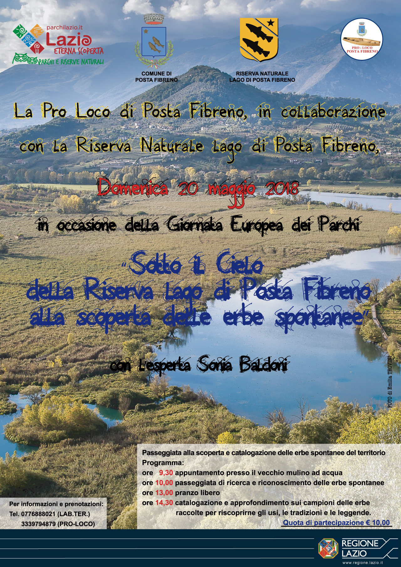In occasione della Giornata Europea dei Parchi e dell’iniziativa “Il Cielo del Lazio”, il 20 maggio 2018, la Riserva Naturale lago di Posta Fibreno è lieta di collaborare con la Pro loco Posta Fibreno per la realizzazione di un evento che ci porterà alla scoperta e alla catalogazione delle erbe spontanee del territorio. Una giornata sotto il cielo di Posta Fibreno che si aprirà alle 9.30 del mattino e proseguirà fino alle 17.30, sotto la guida di Maria Sonia Baldoni, esperta conoscitrice delle proprietà delle varie erbe, della modalità di raccolta e del loro utilizzo in campo medico, cosmetico e culinario.