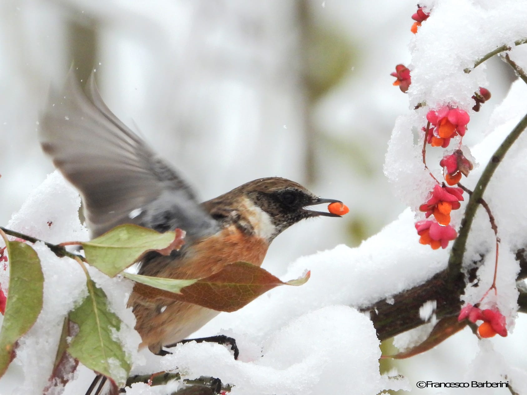 Passeggiando per i campi incolti e le aree aperte che delimitano la Riserva di Monte Rufeno raramente si passa inosservati. C’è una specie di piccolo passeriforme che si pone sempre in bella vista a controllare il territorio: è il Saltimpalo (Saxicola rubicola). È della stessa famiglia che comprende anche Pettirossi, Pigliamosche, Balie, Usignoli, Monachelle e altri piccoli uccelli principalmente insettivori. Il Saltimpalo è infatti specializzato nella cattura di piccoli insetti che trova tra l’erba. Utilizza posatoi sopraelevati, come piccoli cespugli, paletti e recinzioni dalle quali scruta il campo alla ricerca delle prede.