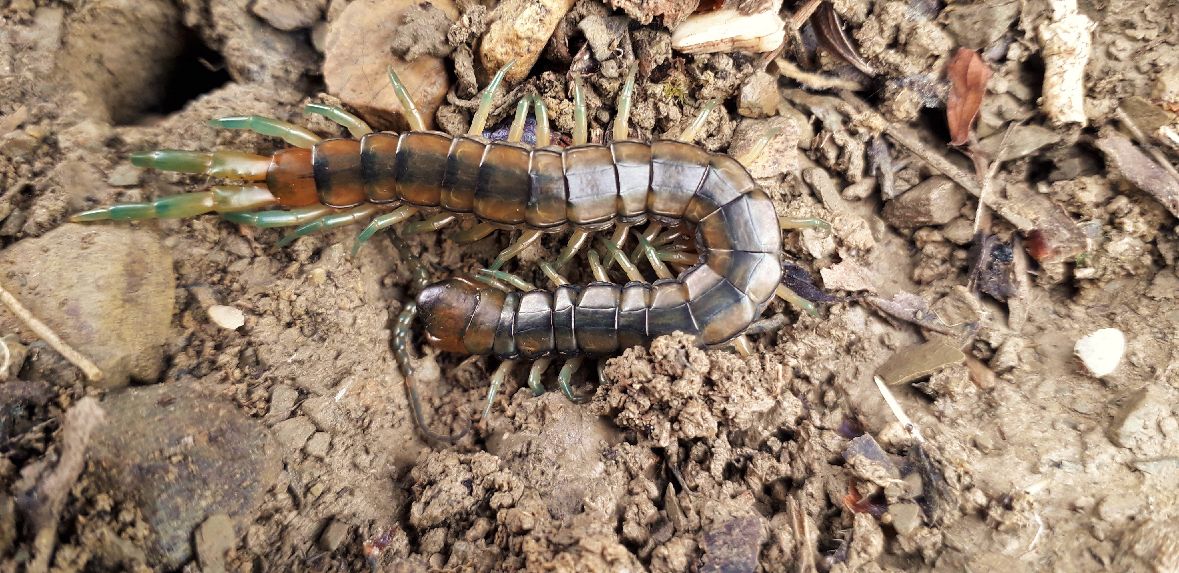 La Scolopendra cingolata vive abitualmente nel terreno,