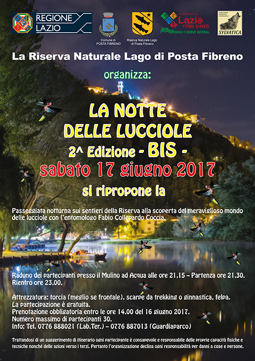 Vista la grande richiesta di adesioni alla Notte delle Lucciole, la Riserva Naturale lago di Posta Fibreno, con la preziosa collaborazione dell’entomologo Fabio Collepardo Coccia dell’Associazione Scientifico-Naturalistica “Sylvatica”, ripropone una serata alla scoperta del magico mondo delle lucciole Sabato 17 giugno 2017.