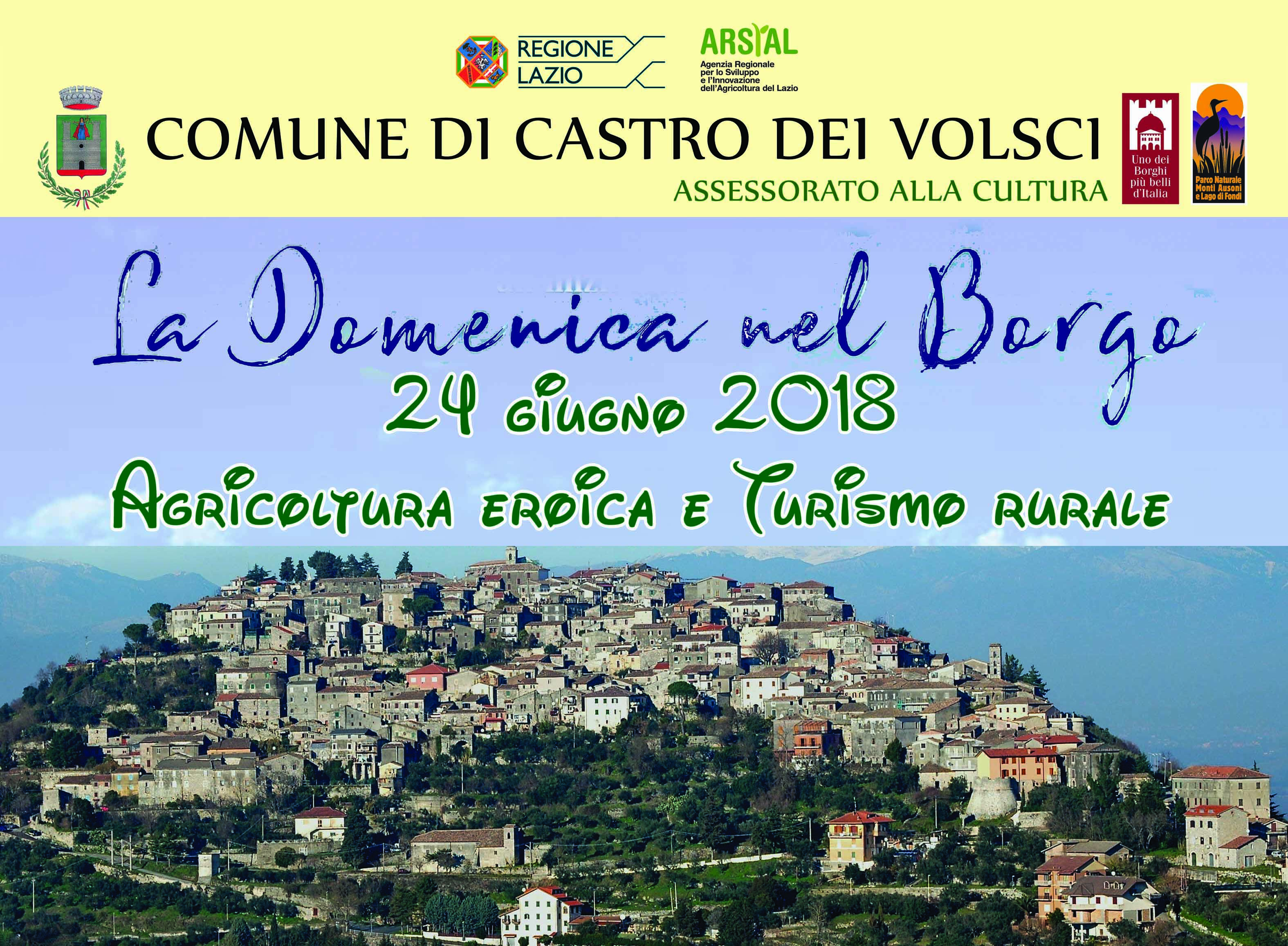 Domenica 24 giugno 2018 a Castro dei Volsci (FR) alla manifestazione "Una domenica nel borgo", organizzata dal Comune in collaborazione con l'Associazione "I borghi più belli d'Italia" di cui Castro dei Volsci fa parte dal 2016, sarà presente, con un proprio stand informativo, anche l'Ente Parco Naturale regionale Monti Ausoni e Lago di Fondi.
