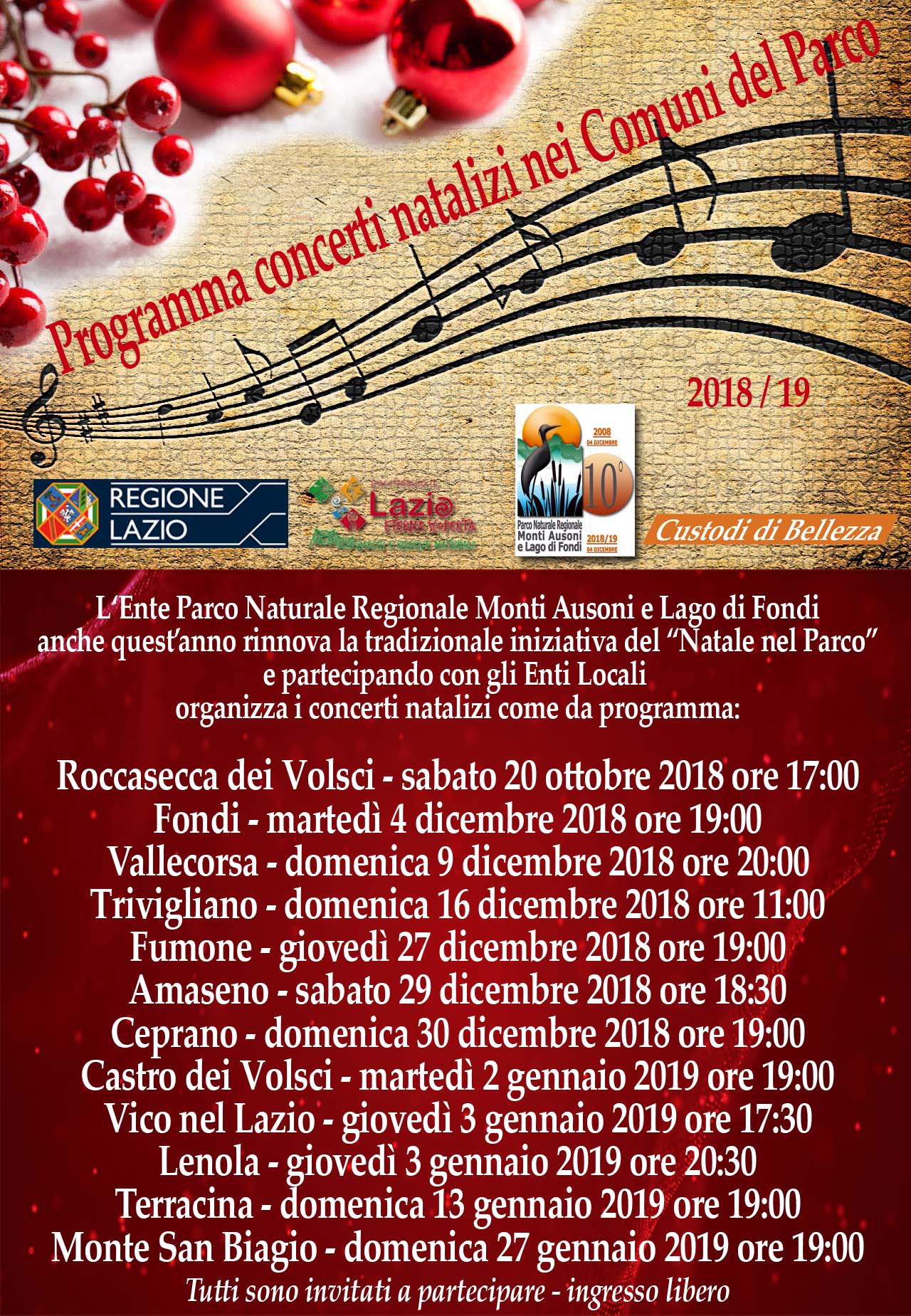 L‘Ente Parco Naturale Regionale Monti Ausoni e Lago di Fondi anche quest’anno rinnova la tradizionale iniziativa del “Natale nel Parco” e partecipando con gli Enti Locali organizza i concerti natalizi come dal seguente programma: