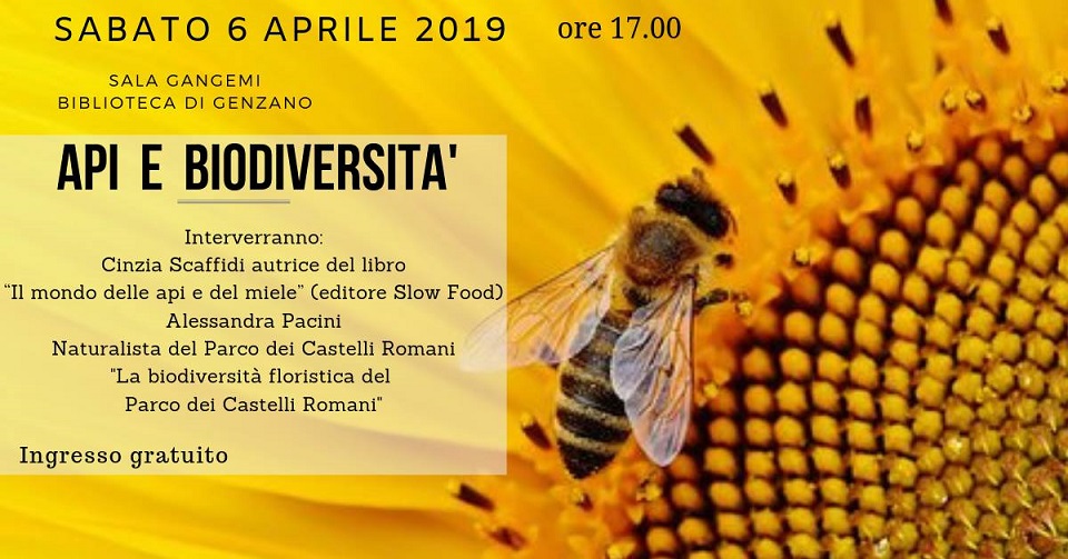 L'appuntamento è sabato 6 aprile 2019 alle ore 17.00, presso la Biblioteca Comunale di Genzano di Roma - Sala Cangemi - per la presentazione del libro: "Il mondo delle api e del miele" (editore Slow Food). Interveranno l'autrice del libro: Cinzia Scaffidi e Alessandra Pacini naturalista del Parco dei Castelli romani che introdurrà "La biodiversità floristica del Parco dei Castelli Romani". L'ingresso è gratuito.