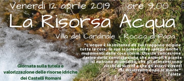 Venerdì 12 aprile 2019, presso Villa del Cardinale a Rocca di Papa (RM), la Giornata sulla tutela e valorizzazione delle risorse idriche del territorio, a cura del Parco dei Castelli Romani.