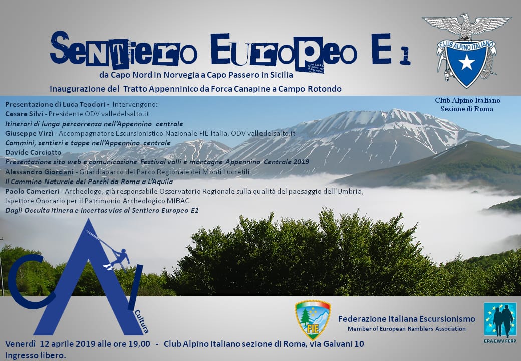 Nella bella sede Cai di Roma a Via Galvani, 10, staserà dalle 19:00 si illustrerà il Sentiero Europa E1, inaugurando il tratto appenninico da Forca Canepine a Camporotondo.