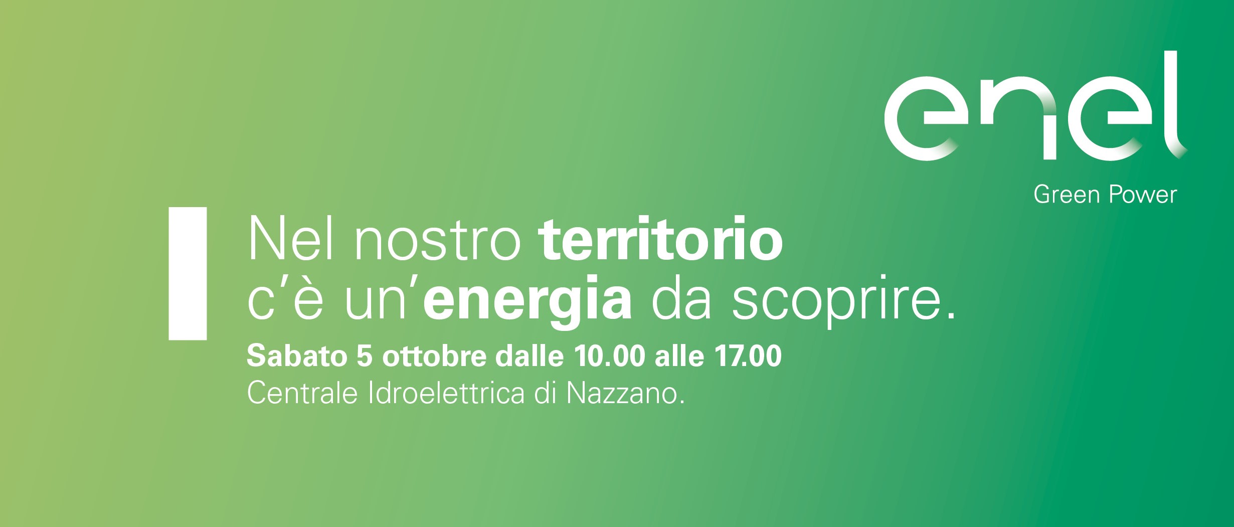 Sabato 5 ottobre Enel Green Power vi invita presso la centrale idroelettrica di Nazzano per una bellissima giornata da passare in compagnia. In programma tante sorprese: visita guidata all'impianto, degustazioni enogastronomiche, partecipazione dell'artigianato locale, animazioni e quant'altro.