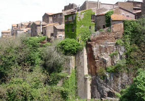 Il paese costituisce uno splendido esempio di borgo medievale a spina di pesce, con una strada principale centrale fiancheggiata da due parallele secondarie, allungato sul cuneo fra due gole e chiuso, nell'unico tratto non difeso naturalmente, da mura databili al secolo XIV, completate verso la fine del XV secolo, con torri quadrilatere e circolari. Il paese è costituito da un primo nucleo risalente al X secolo, con case di varie epoche, dal XIII al XVII: dal XIII il borgo si espanse raggiungendo la conformazione attuale. Il caratteristico paese, al centro del Parco Regionale Marturanum, è celebre per la presenza di numerose necropoli etrusche.