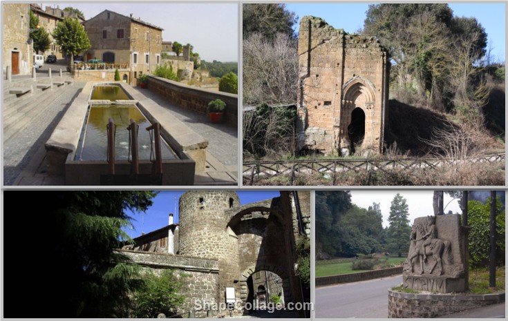 Il pellegrino proveniente da Viterbo e diretto verso Roma non potrà fare a meno di fare sosta nella citta`di Sutri. Il percorso giubilare consigliato, che per taluni tratti ricopre antichi tracciati francigeni, inizia con la visita ai resti dell'antico e fiorente borgo sutrino. Lasciando sulla sinistra lo scoglio di tufo su cui e arroccata la cittadina, si prende la stradina a destra con l'indicazione stradale 'Via di Capo Ripa' che conduce ad un ponte con una fontana. Qui si possono ammirare i resti della torre medievale di S. Paolo, ora mozzata, a pianta rettangolare con un bel portale ad ogiva e tre archi acuti. L'edificio era originariamente la torre campanaria dell'omonima chiesa. Alle spalle del rudere, tra la vegetazione incolta, si possono intravedere i resti di cortine murarie, forse relative ad un sistema di difesa che sorgeva nel punto di passaggio della Via Cassia traversante longitudinalmente il soprastante pianoro. In alto sul colle si può vedere la Madonna del Carmine o anticamente Monte Bono. Qui il pellegrino amante dell'avventura può inoltrarsi per un suggestivo sentiero lungo un percorso naturalistico fornito di segnaletica che conduce all'incontaminata Valle Mazzano, dove crescono spontanee le orchidee selvatiche, per ritornare al punto di partenza. Dopo aver percorso a ritroso la strada ci si immette di nuovo sulla statale Cassia e percorsi 200 - 300 m si arriva sulla destra all'ingresso di Villa Savorelli. In questa zona e`stato istituito il piu` piccolo parco regionale d'Italia con una superficie di quasi sette ettari. Al suo interno sono comprese importanti testimonianze storico - archeologiche come Villa Savorelli, la chiesa di S. Maria del Parto, l'anfiteatro, la Necropoli. Da non perdere anche il suggestivo centro storico.