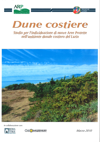 Questo il documento tecnico realizzato dall'Agenzia Regionale Parchi dagli esperti Dario Capizzi, Cristiano Fattori, Dario Mancinella, Massimo Tufano con la collaborazione del dipartimento di Biologia Ambientale dell'Università Roma TRE (Laboratorio della professoressa Alicia Acosta) e dello Studio Associato Geosphera di Latina (M. Amodio, G. Bovina, C. Callori di Vignale, V. Gragnanini) nell'ambito dello studio per l'individuazione di nuove Aree Protette nell'ambiente dunale costiero del Lazio.