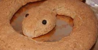 A base di mandorle amare e dolci macinate questo dolce si caratterizza per la particolare forma di serpente a volte guarnito in superficie con la glassa. Presenta gusto di mandorle, retrogusto amaro ed aroma di limone. La cottura avviene in forno a 180°C per un ora.