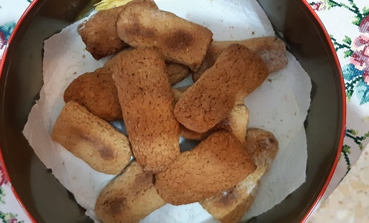 Prodotto dolciario a base di farina tipo 00, zucchero, uova, olio extravergine di oliva, semi di anice e cannella. Presentano una caratteristica forma ad S o ad U.