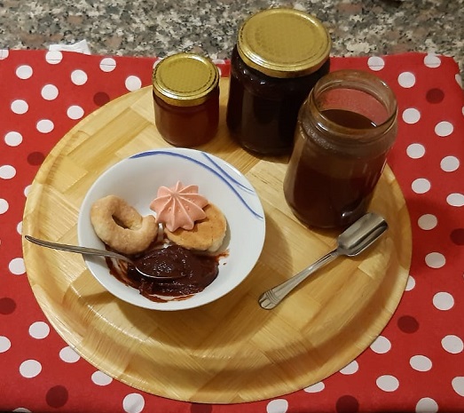 La confettura ancora calda viene messa in vasetti di vetro i quali vengono rigirati sottosopra e lasciati raffreddare, in modo da eliminare l'aria.