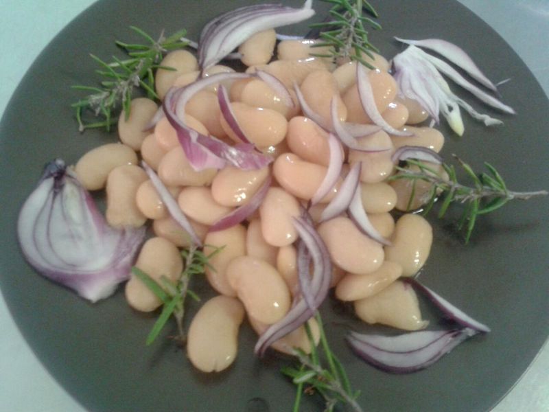 Ingredienti: 500 grammi di fagioli, 250 grammi di pomodori pelati, 2 spicchi di aglio, 150 grammi di olio d'oliva, 3 coste di sedano, 1 carota, 1 pizzico di timo, sale e pepe q.b. Lessare i fagioli per 40 minuti.