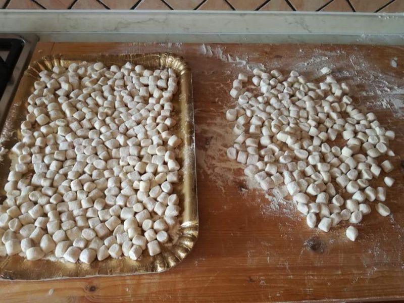 Gli ingredienti appunto sono quelli della casa contadina: le patate, la farina; l'uovo; il formaggio di pecora; la carne di maiale e, infine, vino e olio.