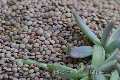 Bollire le lenticchie in acqua fredda con cipolla, sedano, carota e sale. Scolarle al dente e saltarle in un fondo di olio, aglio, rametti di timo, senza friggere. Dopo alcuni minuti, toglierle dal fuoco, lasciarne da parte qualche cucchiaio e passare a purea le altre, aggiungendo un po' di acqua di cottura delle lenticchie. Deve risultare una salsa liquida ed omogenea. Tagliare la lasagna a riquadri e cuocerla al dente in acqua salata. In un tegame da forno porre uno strato di sfoglia, spargere a cucchiaiate la purea di lenticchie e spolverare di parmigiano. Sovrapporre un altro strato di pasta, ancora la purea e il parmigiano. Al termine spargere le lenticchie intere e condire con olio extra vergine di oliva. Passare la teglia in forno lasciando gratinare. Per un sapore più ricco si consiglia di aggiungere alla purea da spargere sulla pasta, dei cubetti di pancetta o salsiccia, rosolati in olio.
